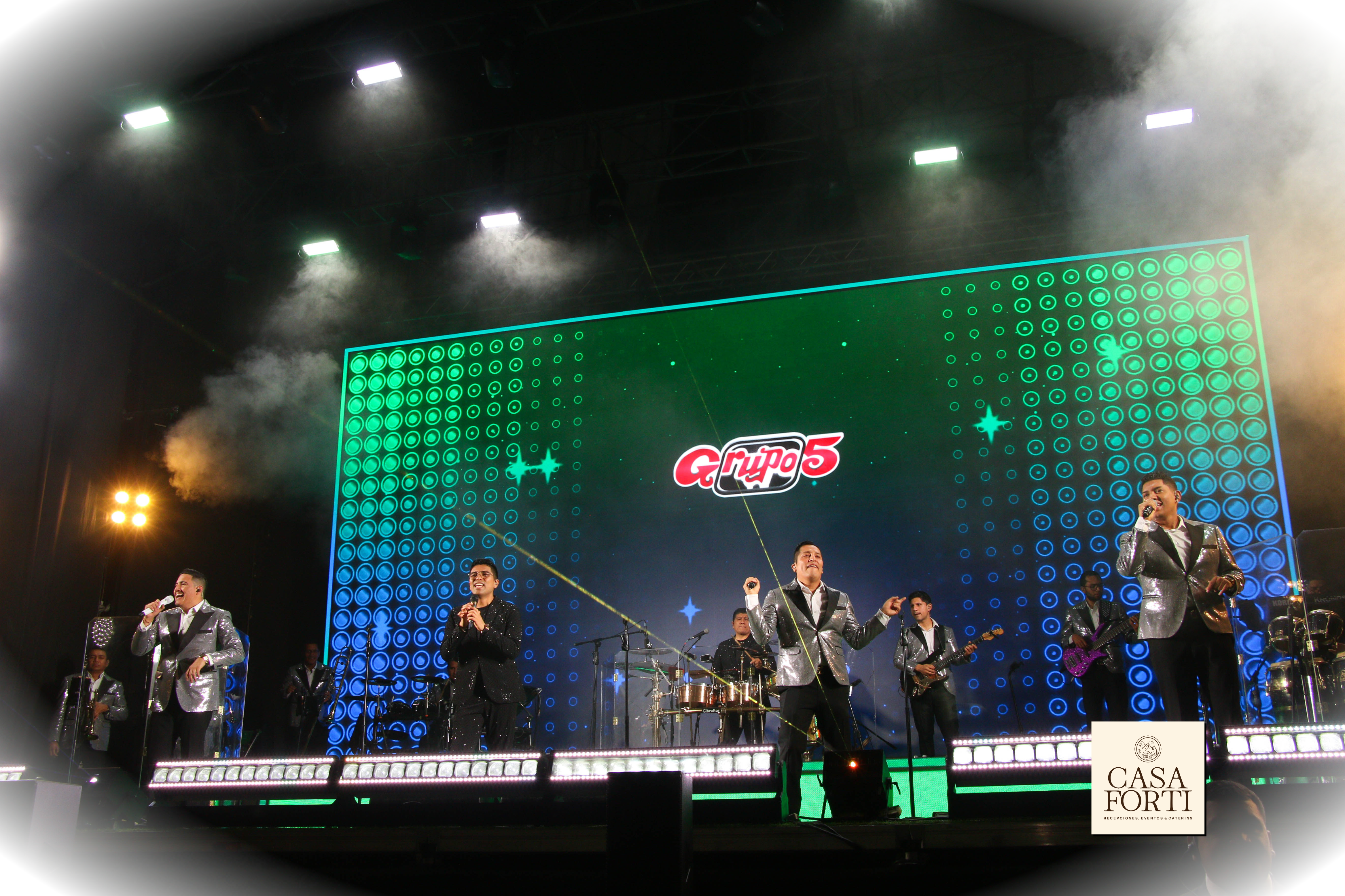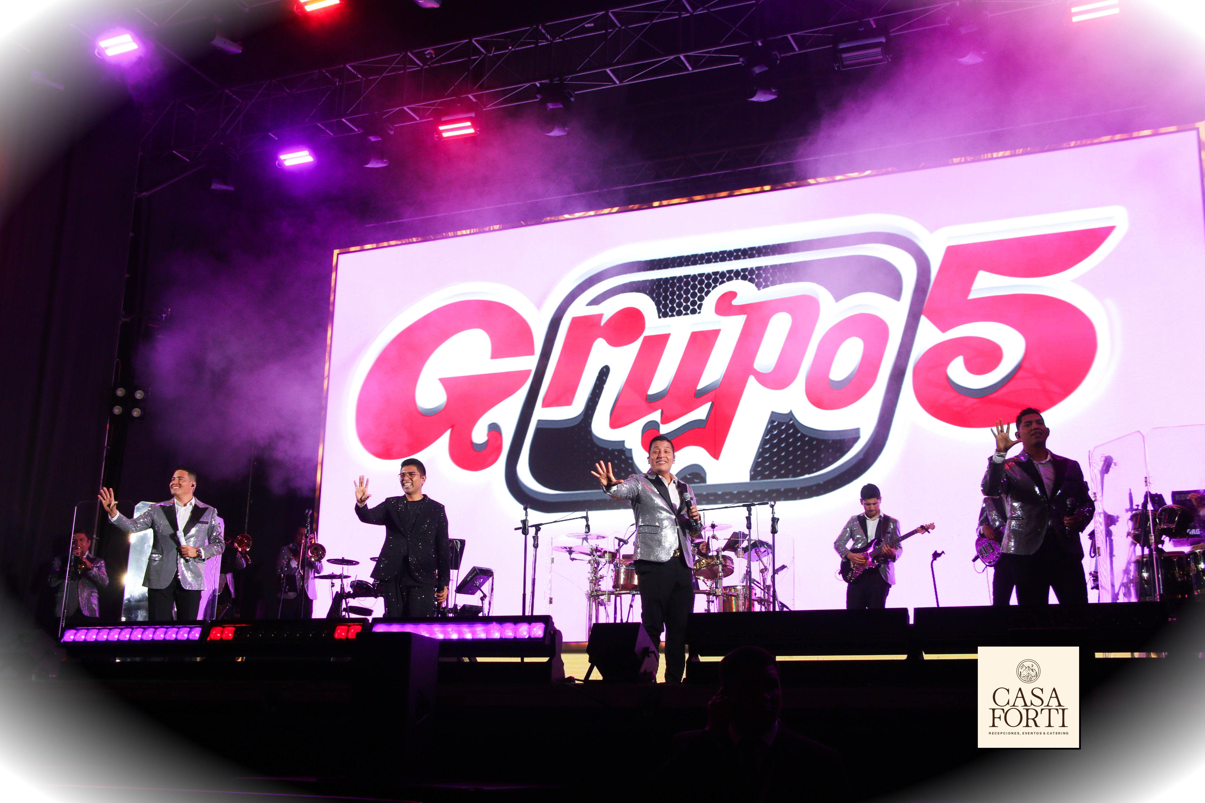 El espacio lució imponente con un escenario profesional, pantalla LED de gran formato y una producción cuidada en cada detalle, creando el entorno perfecto para recibir al Grupo 5, quienes ofrecieron un espectáculo lleno de energía y ritmo que hizo vibrar a todos los asistentes.